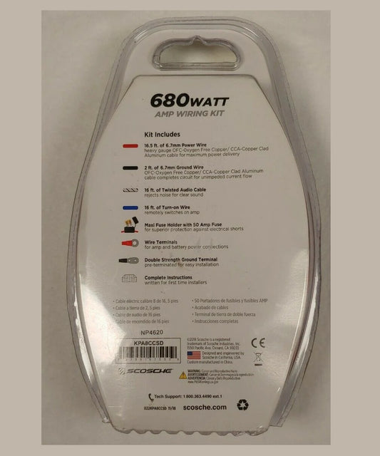 Scosche KPA8CCSD 8 AWG Mono/2 Channel Amplifier Wiring Kit (680 Watts)