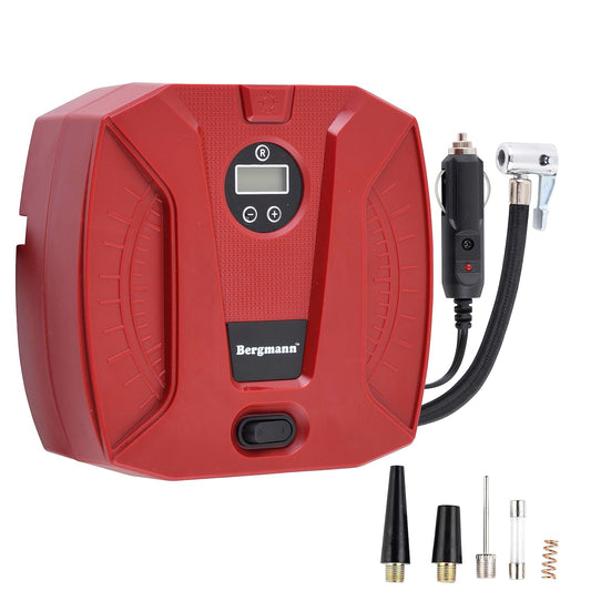 Bergmann Striker BCT-120D Compact & Portable Car & Bike Tyre Inflator | 12V DC, 120W, 100% Copper Motor | Digital Gauge w/ Preset & Auto Cut-Off