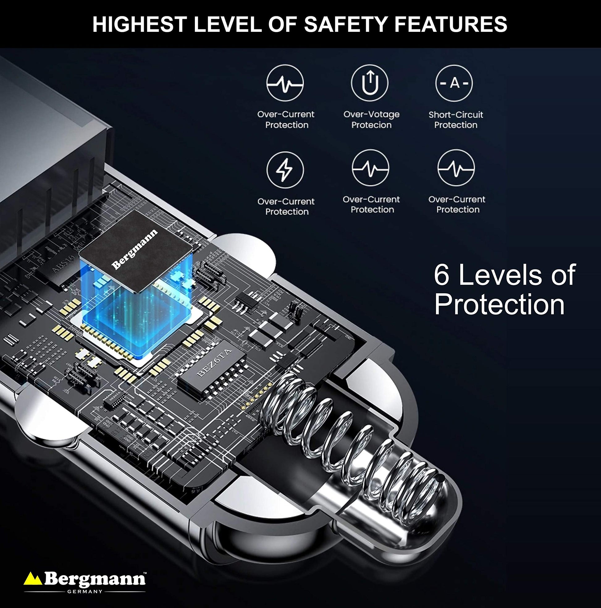 Bergmann CarGenius XXF-3 Car Charger QC3.0 with 3-in-1 USB Cable