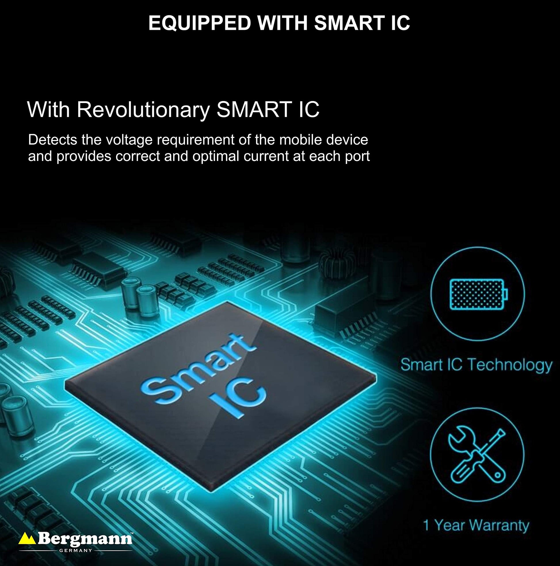 - [WITH SMART IC] – Smart IC identifies the voltage requirements of the devices and provides optimal uninterrupted charging to ensure both - high speed and safety.