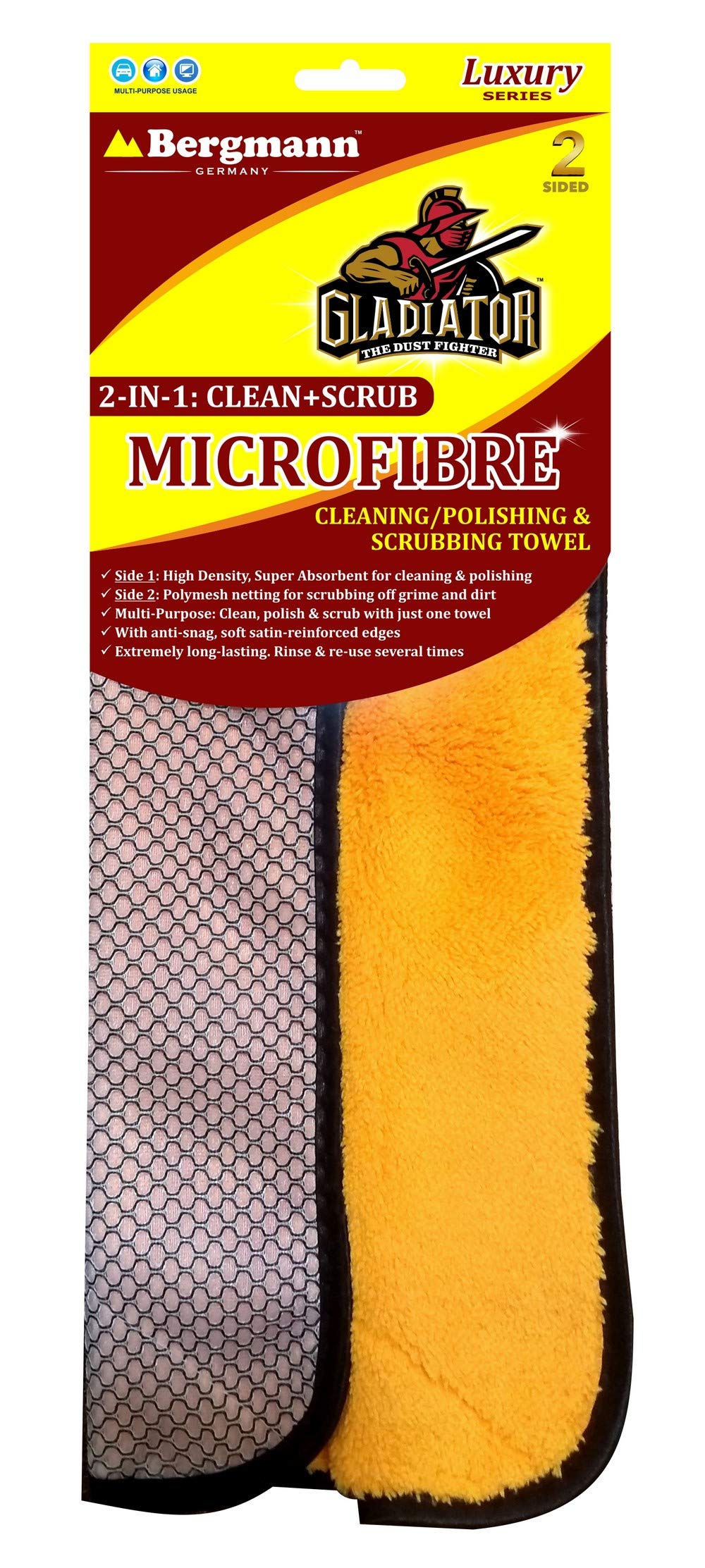 The Bergmann Gladiator ‘2-in-1 Clean and Scrub’ Microfibre is a unique, patented microfibre which is dual sided. Unlike other microfibres which are same on both the sides, this microfibre is double ply and dual sided.