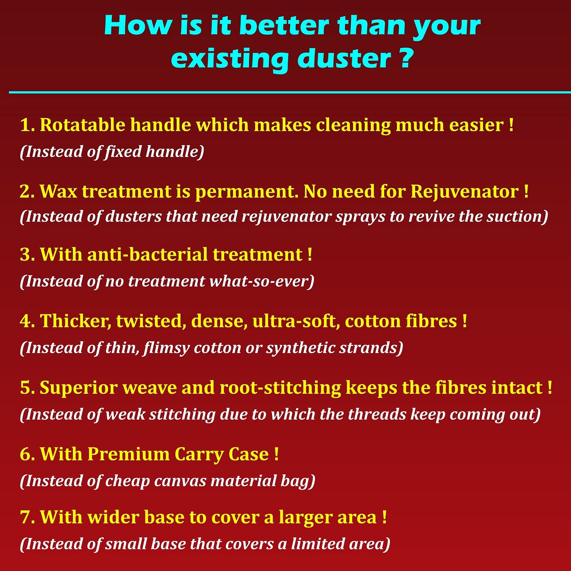 - With Anti-Bacterial treatment to ensure that bacteria does not breed on them. Most other dusters have no such treatment