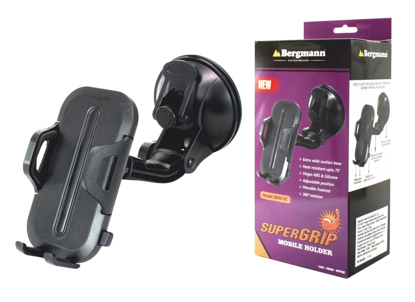 - Bergmann SuperGRIP Mobile Holder is a very convenient holder designed to securely mount ALL phones to car windshields.