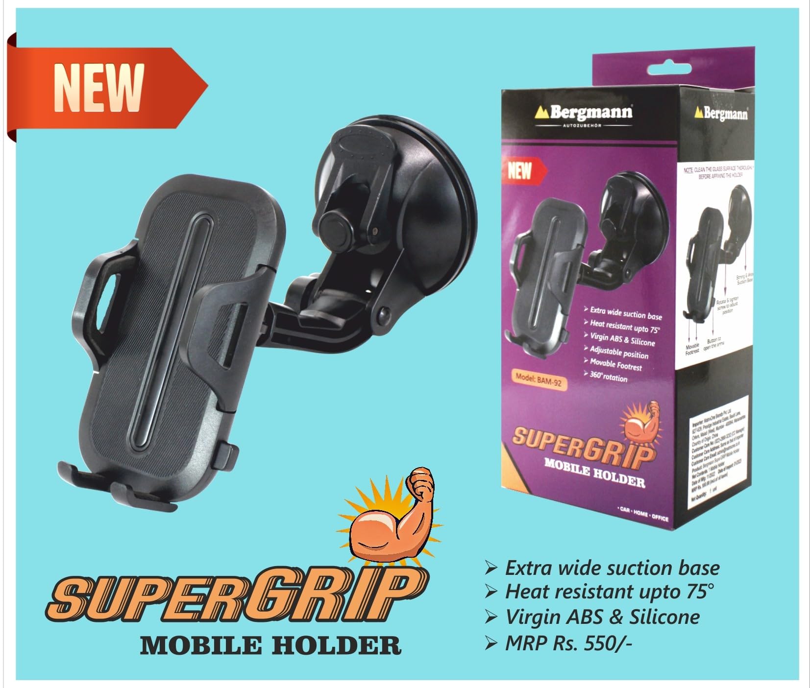 Bergmann SuperGrip Mobile Holder for Car Windshield & Dashboard (Universal)