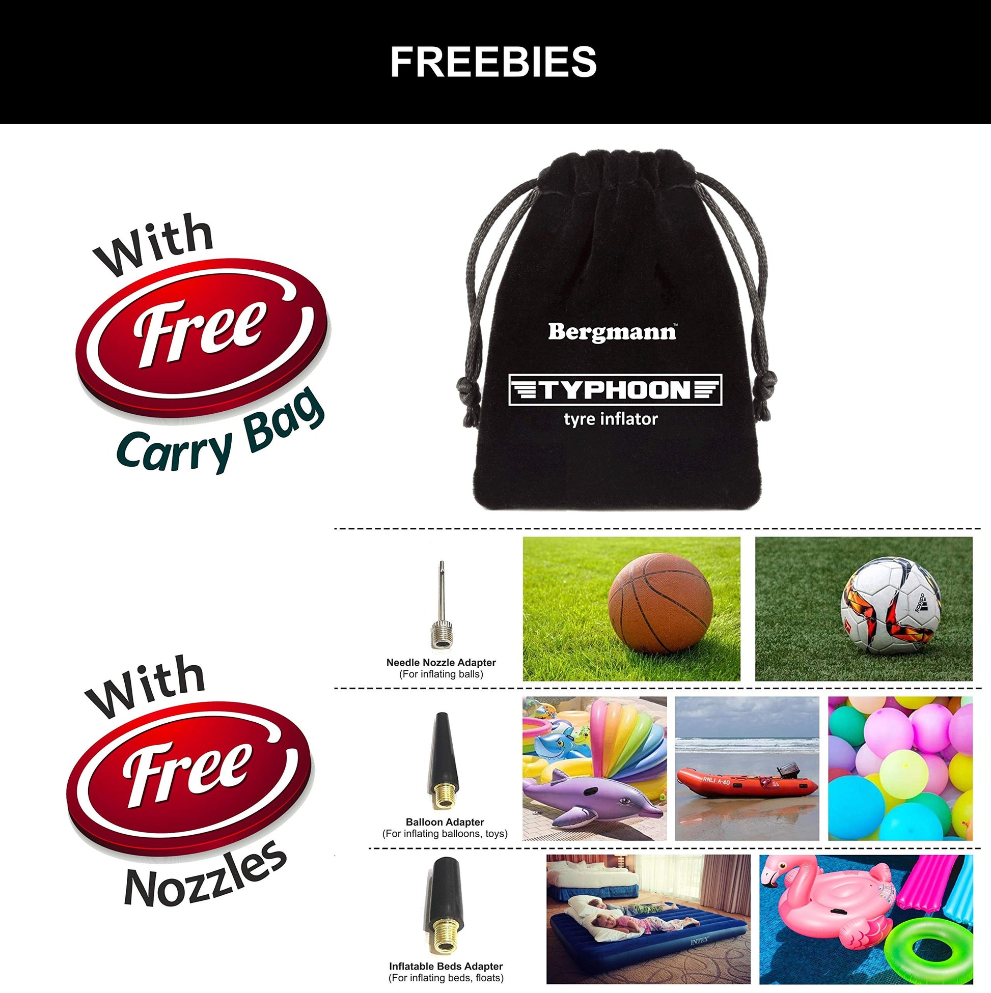 Bergmann Germany now brings to you Typhoon Digital Heavy-Duty Metal Tyre Inflator which is not just quick, but is sturdy, safe, robust, durable, reliable, ultra-portable and convenient. Its powerful 100% copper motor is designed for efficient long-term operation even under harsh climatic conditions.