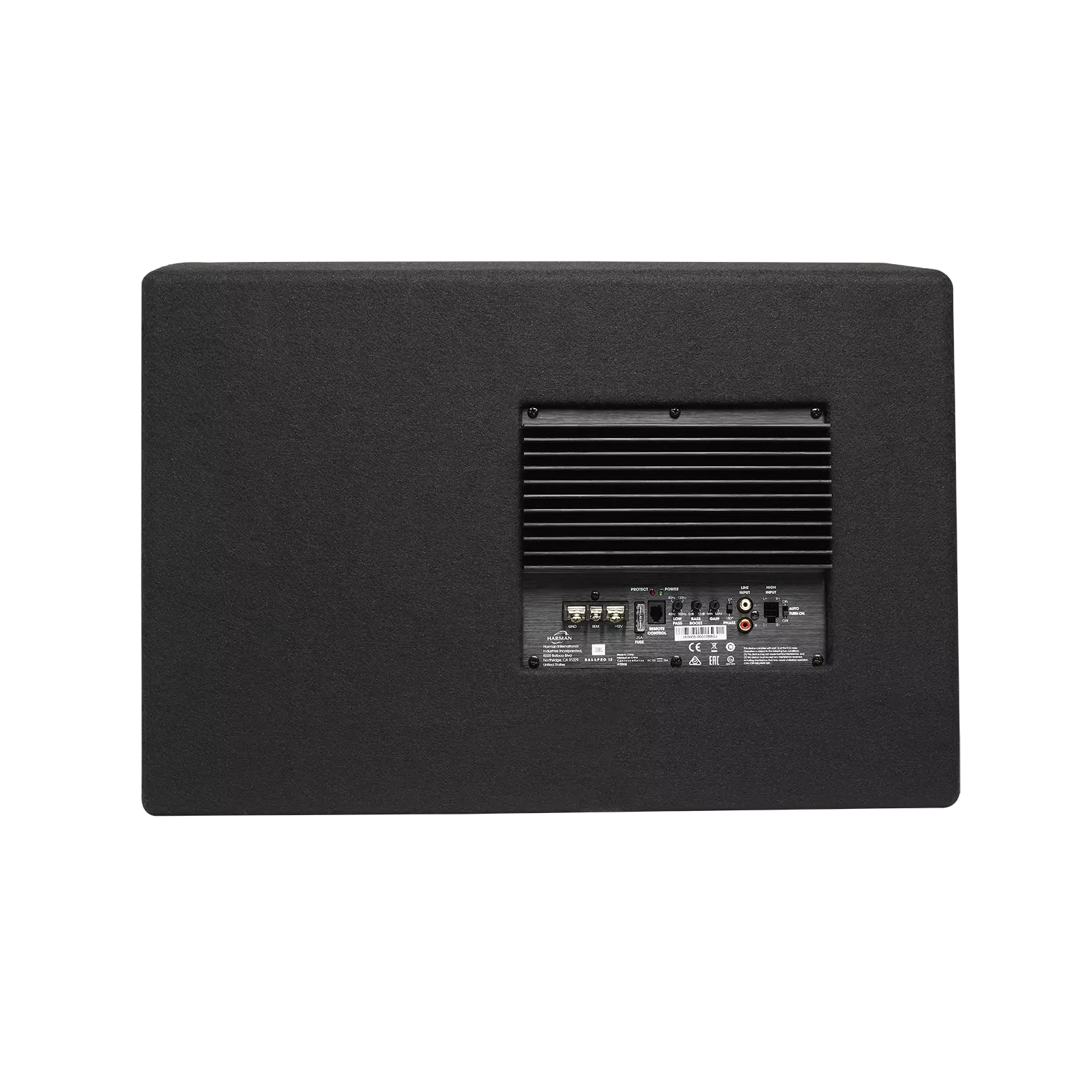 The whole system is carefully designed to integrate the 150Wrms amplifier, subwoofer, slipstream port into one MDF wood enclosure, which providing the easiest way to add powerful JBL bass to any car system.