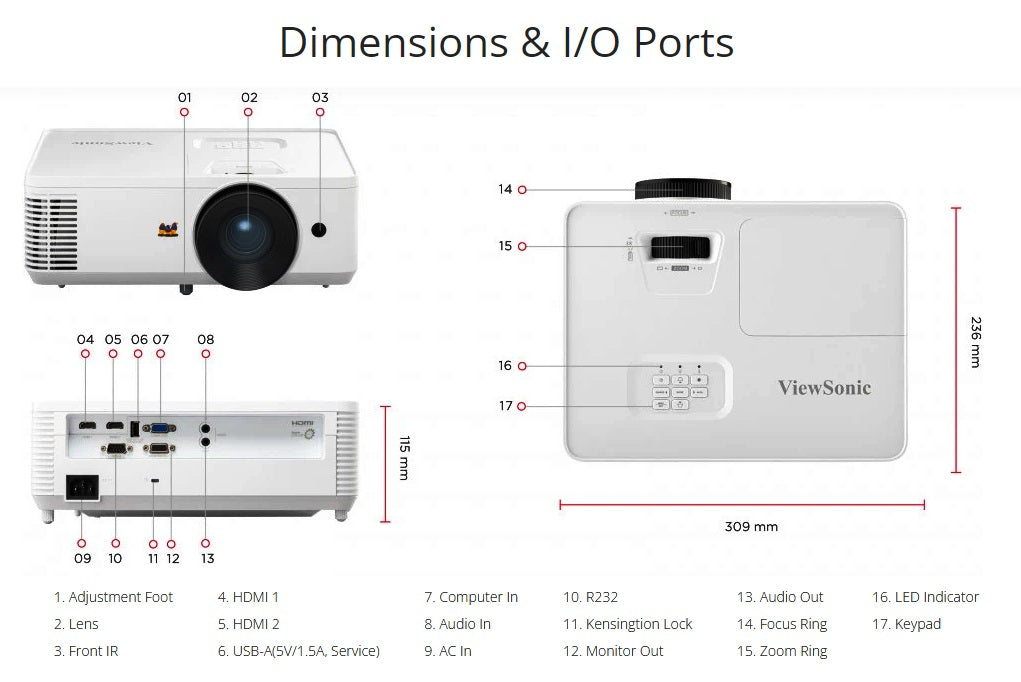 - Dimensions (WxDxH) with Adjustment Foot: 309x234x115mm